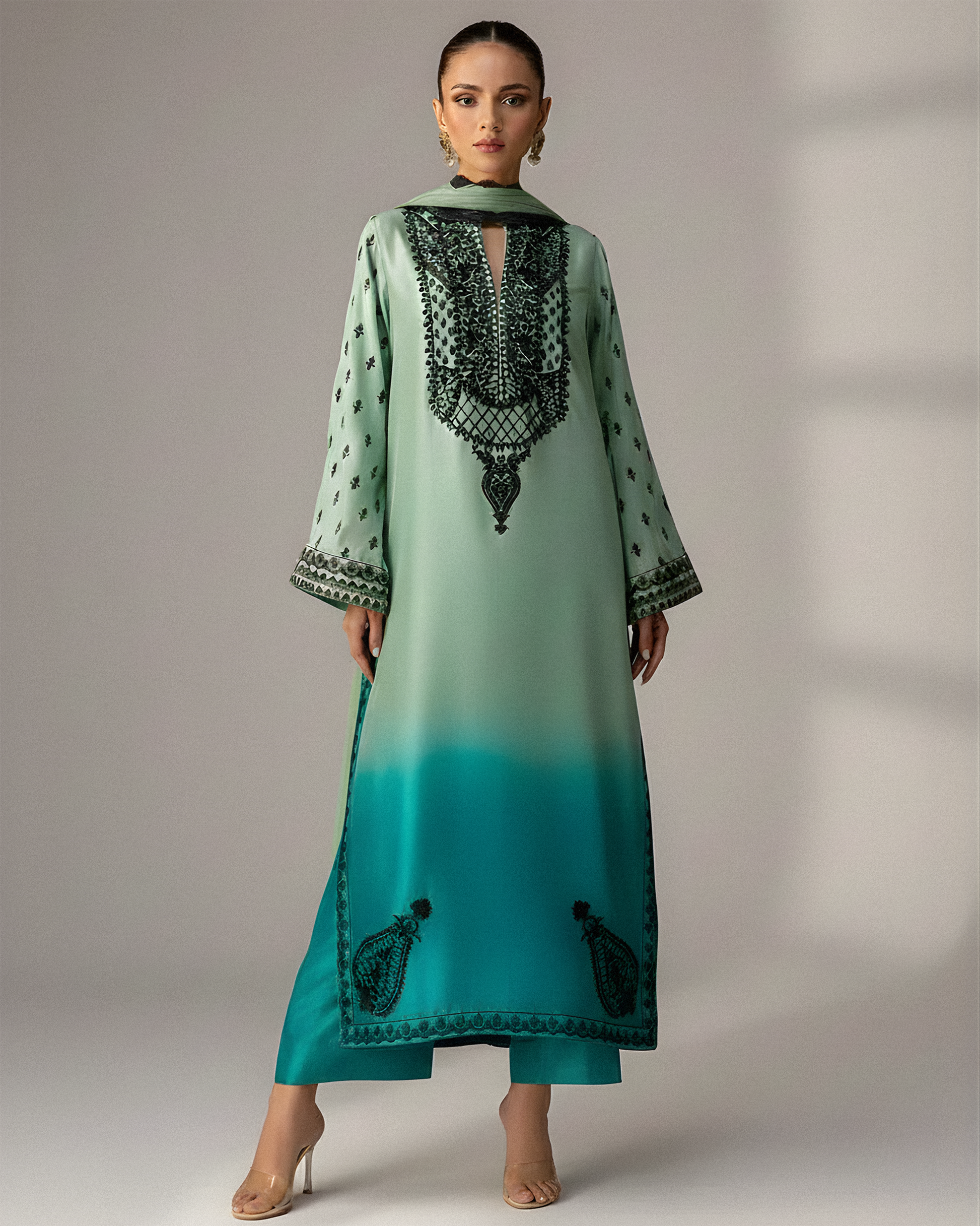 Zainab Chottani - 3 Piece Unstitched Embroidered and Printed SIlk V227